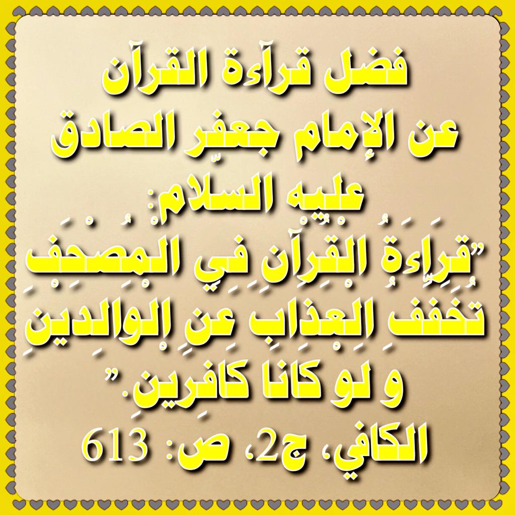 معارف أهل البيت On Twitter فضل قراءة القرآن عن الإمام الصادق عليه السلام قراءة القرآن في المصحف تخفف العذاب عن الوالدين ولو كانا كافرين Http T Co Ak7p2fmdsy