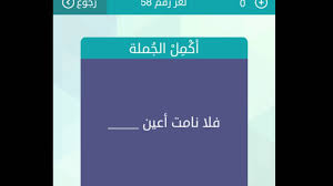 جواب سؤال فلا نامت اعين من لعبة وصلة المجموعة الثامنة لغز رقم 68 صقور الإبدآع