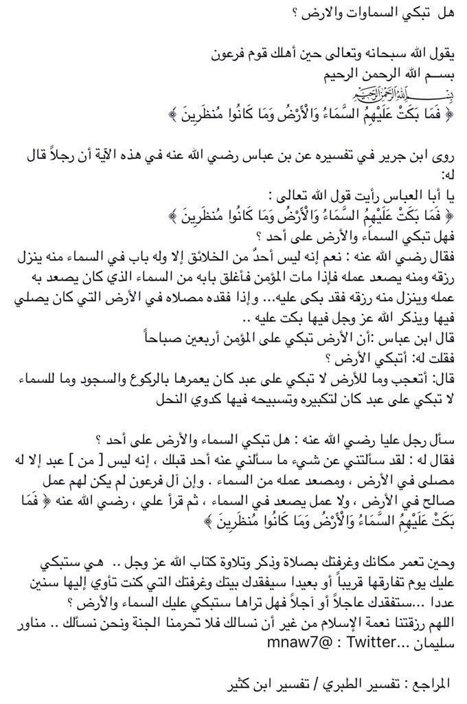 مناور سليمان On Twitter هل تبكي السماء والأرض على أحد ف م ا ب ك ت ع ل ي ه م الس م اء و ال أ ر ض و م ا ك ان وا م نظ ر ين