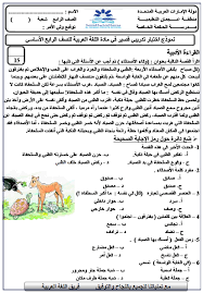 اختبار فهم المقروء لغة عربية صف رابع فصل ثالث مدرستي الامارتية