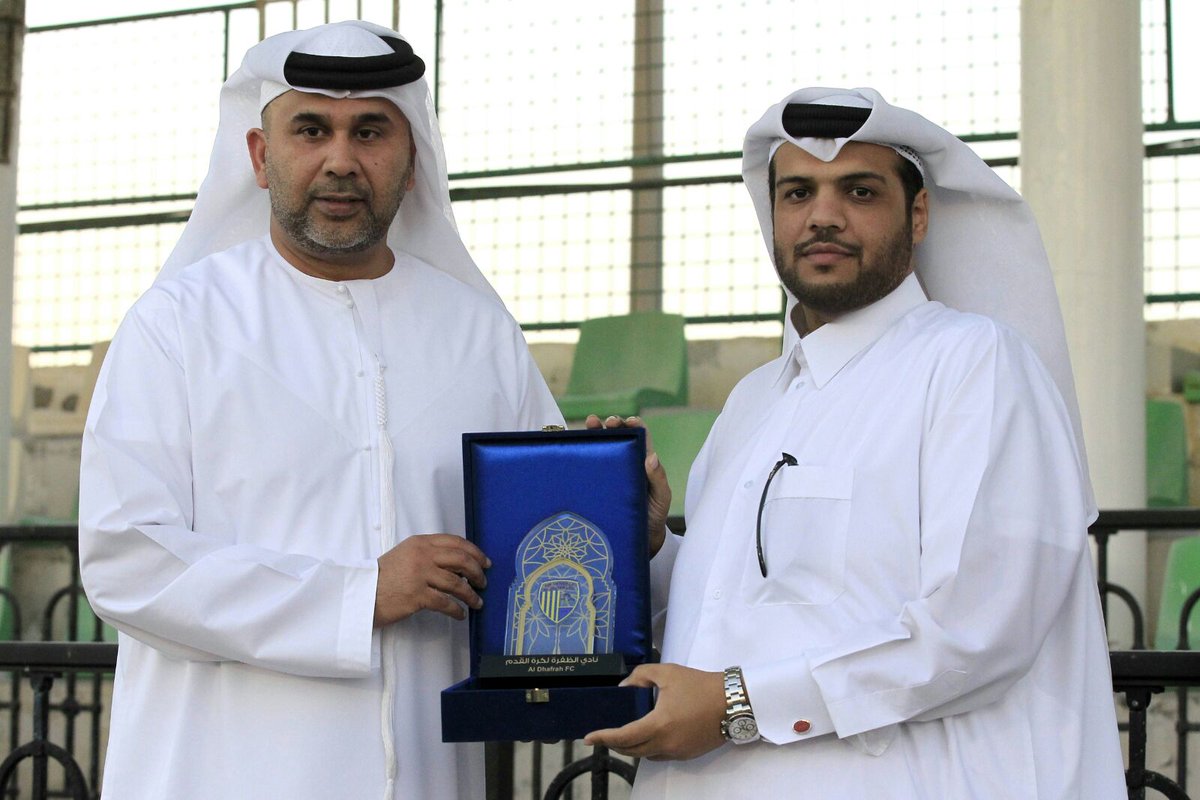 نادي الظفرة الرياضي A Twitter أحمد عمران القبيسي نائب رئيس شركة الظفرة يتبادل الدروع مع الشيخ سلمان بن فيصل آل ثاني مشرف جهاز الكرة بنادي الأهلي Https T Co Fru53ekwhi