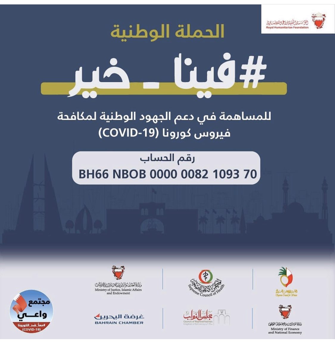 بتوجيه من ناصر بن حمد الملكية للأعمال الإنسانية تدشن حملة فينا خير للمساهمة في دعم الجهود الوطنية لمكافحة فيروس كورونا