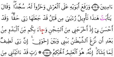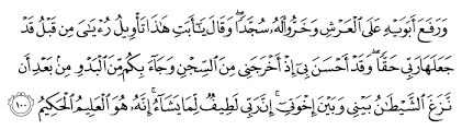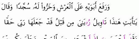 سورة يوسف و ر ف ع أ ب و ي ه ع ل ى ال ع ر ش و خ ر وا ل ه