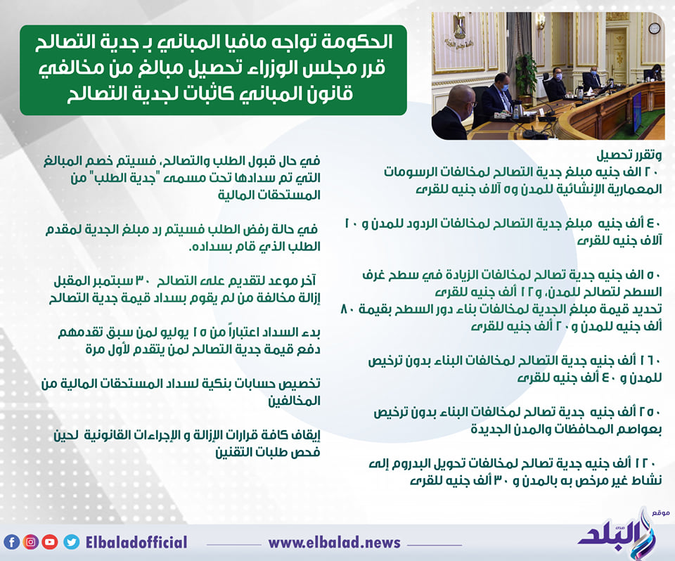 كل ما تريد معرفته عن تفعيل قانون التصالح في مخالفات البناء بمصر إنفوجرافيك معلومات مباشر