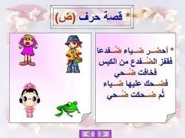 في يوم من الأيام نادى والد شيرين عليها وكان يصمم أشكال للحروف فقال لها أن أرسم هذة التصاميم وسأخذكي معي لموقع رسمها فسألته أين يوجد موقع رسمها فقال لها إذا. كتابة ورق الصف وتلوين صورة تبدأ بحرف الضاد. عرض صور و مجسمات لأشياء تبدأ بحرف الضاد.