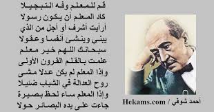 أحمد شوقي قم للمعلم وفه التبجيلا كاد المعلم أن يكون رسولا حكم