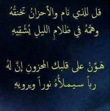 O Xrhsths Almaha K Sto Twitter قل للذي نام والأحزان تخنقه وهمه في ظلام الليل يشقيه هون على قلبك المحزون إن له ربا سيملؤه نورا ويرويه Https T Co Cc7vboinn9