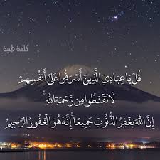 قل يا عبادي الذين اسرفوا علي انفسهم لاتقنطوا من رحمة الله ان الله يغفر الذنوب جميعا انه هو الغفور الرحيم Alm383