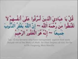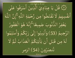 قل ياعبادي الذين اسرفوا علي انفسهم لا تقنطوا من رحمة الله