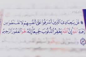 قل يا عبادي الذين اسرفوا علي انفسهم لاتقنطوا من رحمة الله ان الله يغفر الذنوب جميعا انه هو الغفور الرحيم Alm383