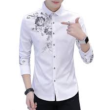 قميص رجالي طباعة طويلة الأكمام زهرة قميص الرجال الزهور روز عارضة بلوزة الرجال ملابس الصيف الأحمر الأبيض Aliexpress