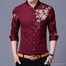 العلامة التجارية زر أسفل قميص النبيذ الأحمر الرجال الأزياء جولدن روز زهرة طباعة قمصان رجالي سليم صالح كم طويل قميص أوم 2020 من Nothingatall 126 34ر س موبايل Dhgate