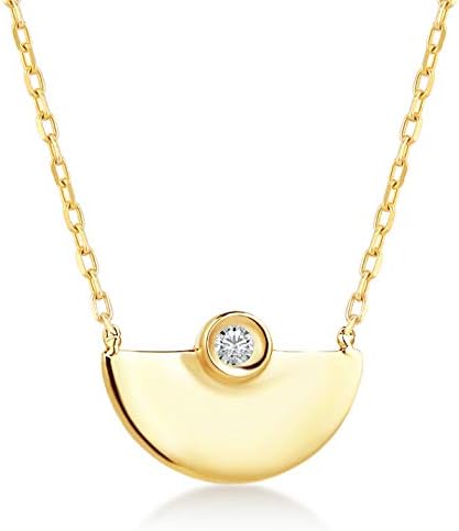 عقد سلسلة وقلادة من الذهب الخالص 14 قيراط نصف القمر 0 01 قيراط من الماس للنساء 18 بوصة Amazon Ae