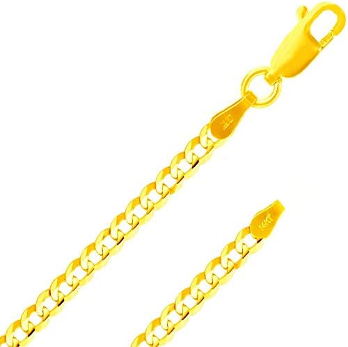 قلادة من الذهب الخالص عيار 14 قيراط بقطع الماس الإيطالية من الذهب الأصفر 3 0 مم كبح سلسلة متصلة كبح البحر صنع في إيطاليا 14 قيراط مع مشبك مخلب جراد البحر 24 بوصة Amazon Ae