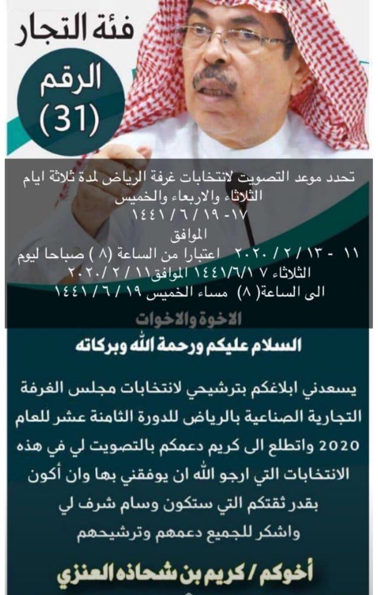سلامه ألعنيد العنزي On Twitter نبارك لابن العم كريم العنزي الفوز بالعضويه في منطقة الرياض فئة التجار الف مبروك