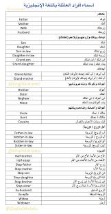 اسماء افراد الاسرة العائلة بالانجليزي English 100